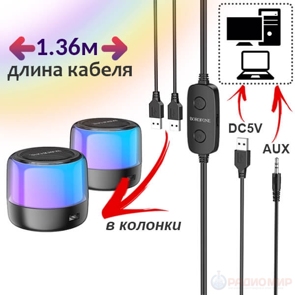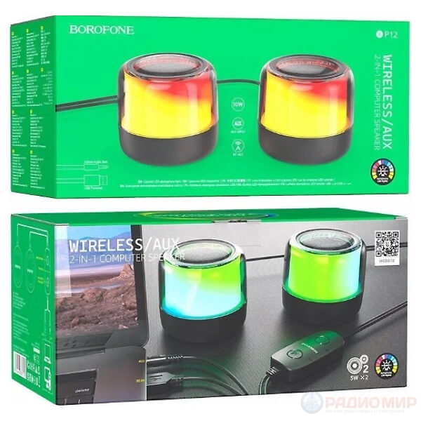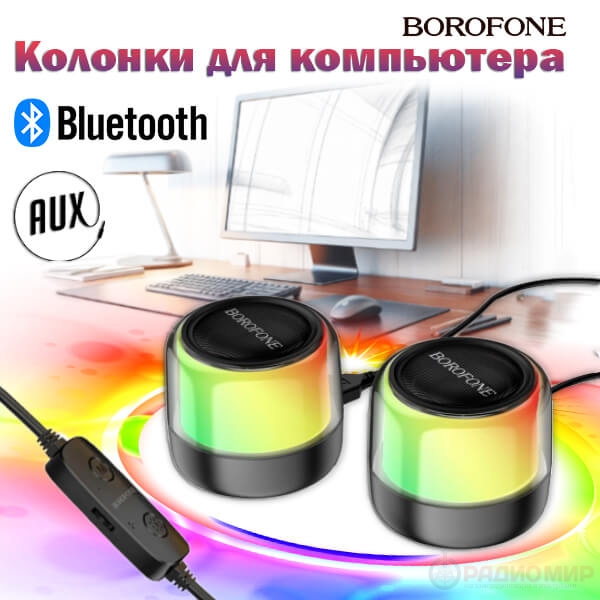 Borofone BP12 — компьютерные колонки с RGB, Bluetooth 5.2 и ярким стерео-звуком