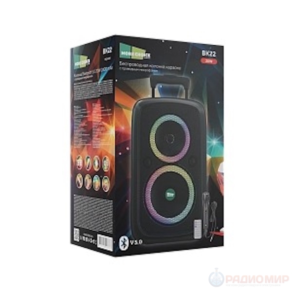 Портативная колонка BK22 сочетает мощный стереозвук 2×10 Вт и все популярные интерфейсы подключения — Bluetooth 5.0, AUX, USB. Идеально подойдёт для вечеринок, праздников и караоке — в комплекте уже есть микрофон.
