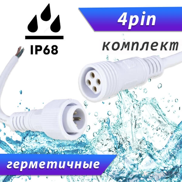 Герметичный 4-контактный разъем с защитой IP68 для надежного соединения проводов. Подходит для водонепроницаемых и пылезащищенных систем.