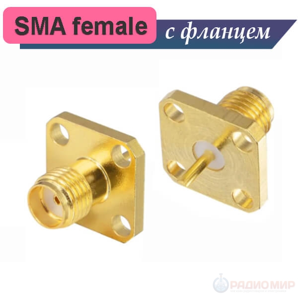 SMA розетка приборная с фланцем. 4 отверстия. Под пайку. Материал-латунь.