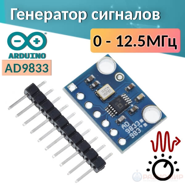 AD9833 позволяет создавать три типа сигналов: синусоидальные, треугольные и прямоугольные. Частоту и фазу можно программно менять через Arduino.