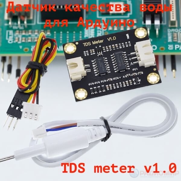TDS Sensor Meter V1.0 Board Module — модуль измерения TDS для Arduino UNO R3. Измеряет чистоту воды (0–1000 ppm), подходит для гидропоники, фильтрации и аквариумов. Водонепроницаемый зонд, поддержка температурной коррекции.