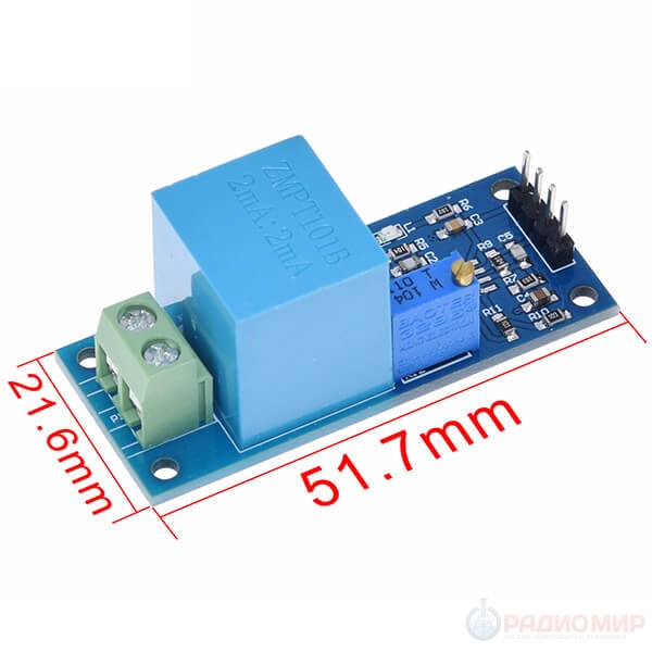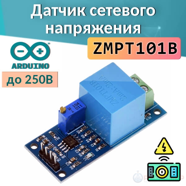 Модуль ZMPT101B — это активный однофазный датчик переменного напряжения, предназначенный для безопасного измерения сетевого AC-напряжения до 250 В с помощью Arduino и других микроконтроллеров. В основе модуля используется высокоточный миниатюрный трансформатор напряжения ZMPT101B и прецизионный операционный усилитель.