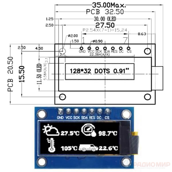- Размер: 0.91" (диагональ)