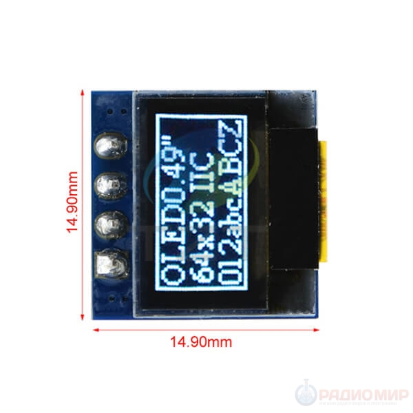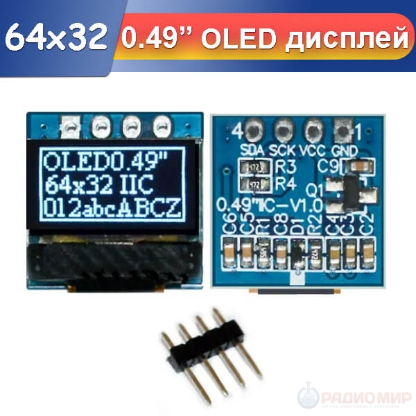 0.49-дюймовый OLED модуль дисплея с разрешением 64×32 точек на контроллере SSD1306 представляет собой компактный монохромный экран с положительным отображением. Интерфейс I2C/IIC обеспечивает лёгкое подключение к Arduino, AVR и STM32 для проектов DIY и встраиваемых систем.