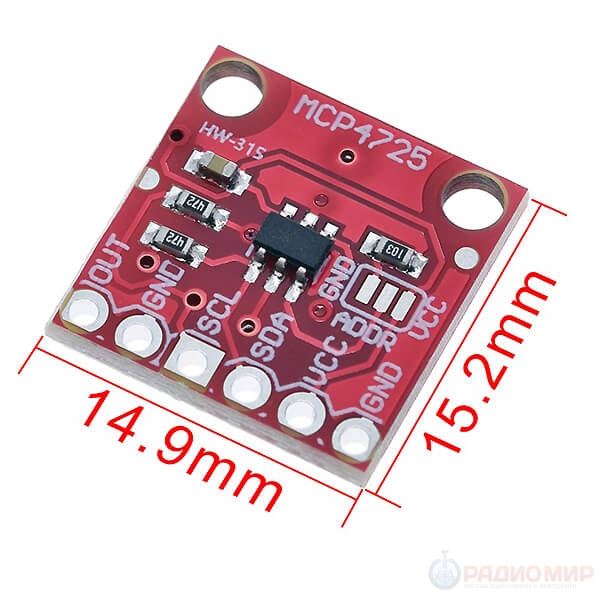 О: Управление по I²C: отправляете 12-битное значение (0–4095), модуль преобразует его в напряжение пропорционально VCC. Можно использовать готовые библиотеки для Arduino (например, Adafruit_MCP4725 или Wire + простые команды).