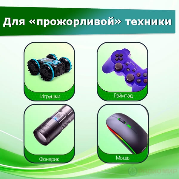 - Подойдёт ли аккумулятор для беспроводной мыши? Да, он подходит для мышек, клавиатур, пультов и другой маломощной электроники.