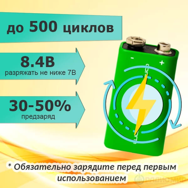 - Нужна ли специальная зарядка? Да, используйте зарядное устройство, подходящее для аккумуляторов 6F22 / Крона.