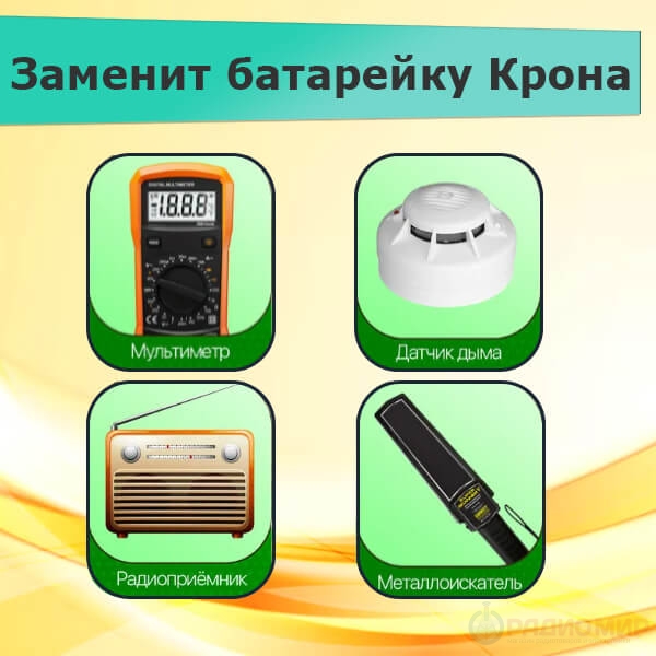 - Можно ли использовать вместо одноразовой батарейки Крона 9 В? Да, напряжение почти совпадает, но уточните совместимость с вашим устройством.