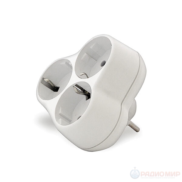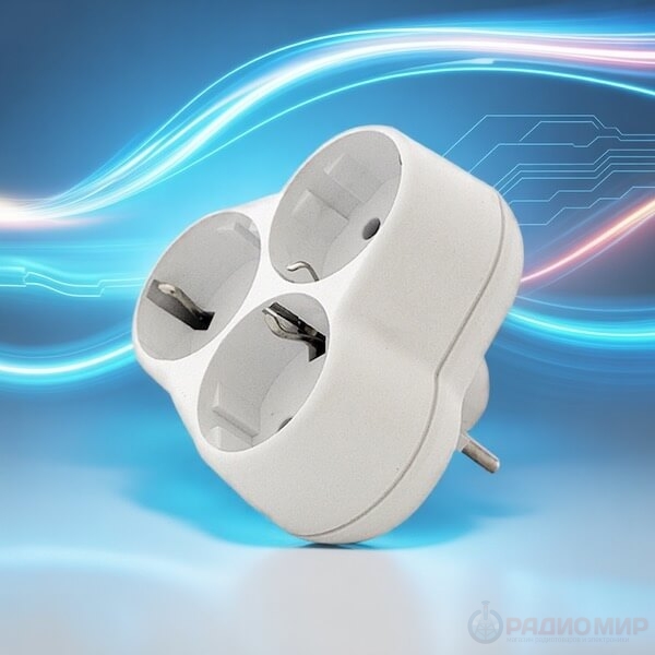 Корпус тройника выполнен из прочного АБС-пластика, а контакты — с никелевым покрытием, что обеспечивает долгий срок службы и устойчивость к окислению. Изделие рассчитано на нагрузку до 16А при напряжении 220 В. Цвет корпуса — классический белый, который органично впишется в любой интерьер.