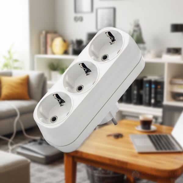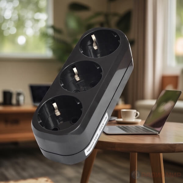 Корпус тройника выполнен из прочного АБС-пластика, а контакты — с никелевым покрытием, что обеспечивает долгий срок службы и устойчивость к окислению. Изделие рассчитано на нагрузку до 16А при напряжении 220 В. Цвет корпуса — белый или черный (на выбор), органично впишется в любой интерьер.