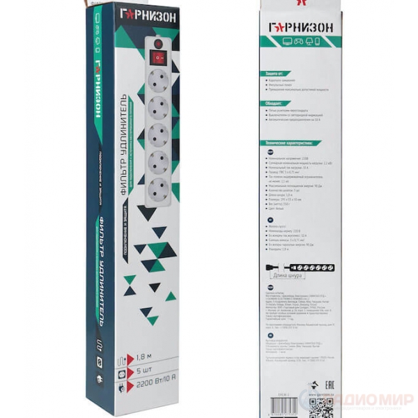 Гарнизон ЕНW-15 - сетевой фильтр-удлинитель с шестью евророзетками 220В с заземлением.
