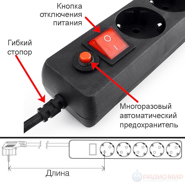 Автоматический предохранитель на 10 А защищает фильтр и подключенные устройства от перегрузки и короткого замыкания.