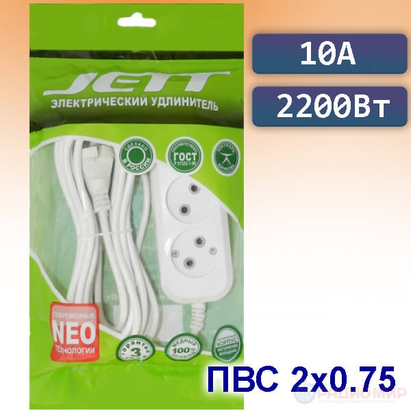 Удлинитель ДЖЕТТ РС-2, 2 розетки.