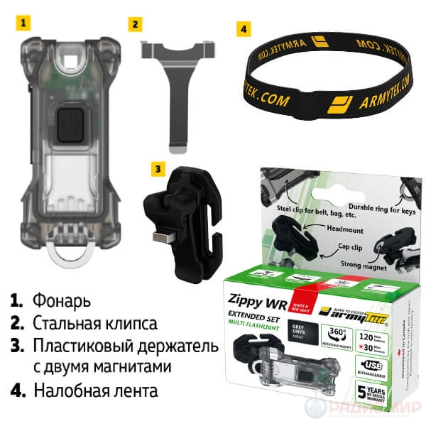 Фонарь Armytek Zippy Extended Set WR — компактный мультифонарь 3-в-1 с белым и красным диодом. Идеален для рыбалки, обслуживания авто, ремонта, кемпинга и любых полевых и повседневных задач. Малый вес и встроенный аккумулятор делают его невероятно удобным EDC-решением.