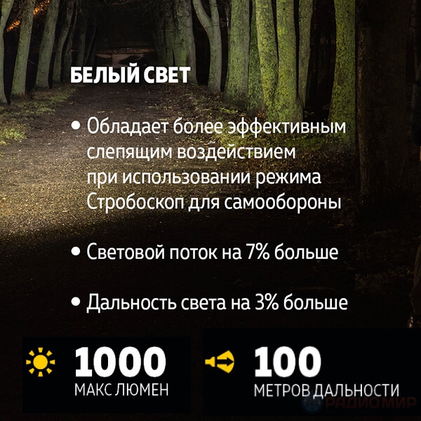 | Строб 3 | 1000 лм / 10 Гц / 1 ч |