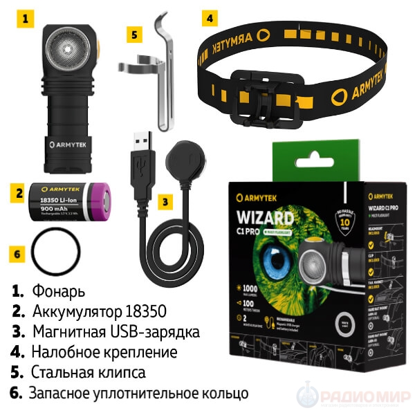 Да, Wizard C1 Pro — универсальный форм-фактор 3-в-1: налобный, карманный, нагрудный, с магнитом для крепления к металлу.