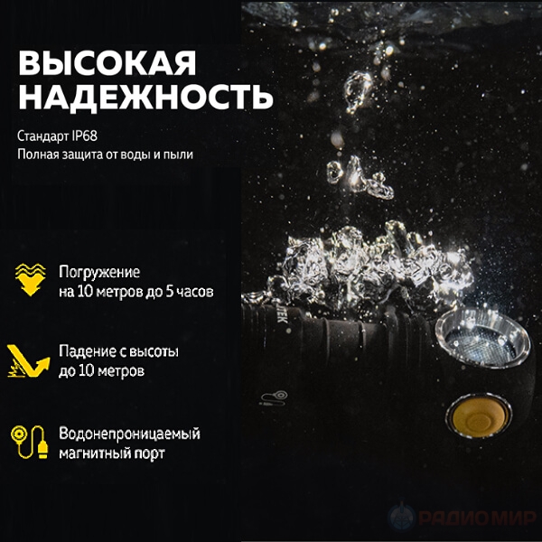 Да, благодаря стандарту IP68 фонарь выдерживает погружение до 10 метров.