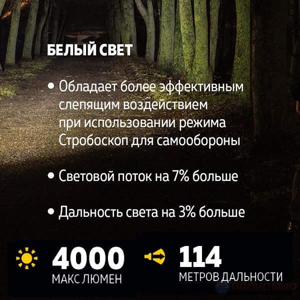 - Strobe 2: 4000 лм / 1 Гц / 14 ч (900 лм после 10 мин)