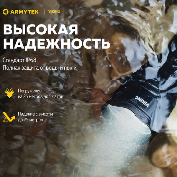 - Защита: IP68 — безопасная глубина погружения до 25 м.