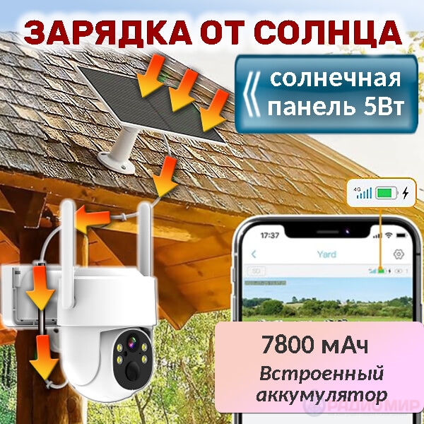 RV-TKCNIP400— это автономная уличная камера нового поколения, работающая по 4G-сети и оснащённая солнечной панелью мощностью 5 Вт. Благодаря встроенным аккумуляторам 3×18650 общей ёмкостью 7800 мА·ч камера способна работать неделями без подзарядки и подключения к электросети. Поддерживает облачное хранилище, запись на карту памяти и двустороннюю голосовую связь.
