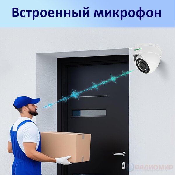 ✅ Да, у модели встроенный микрофон. Звук записывается вместе с видео при подключении к видеорегистратору, поддерживающему аудио по IP.