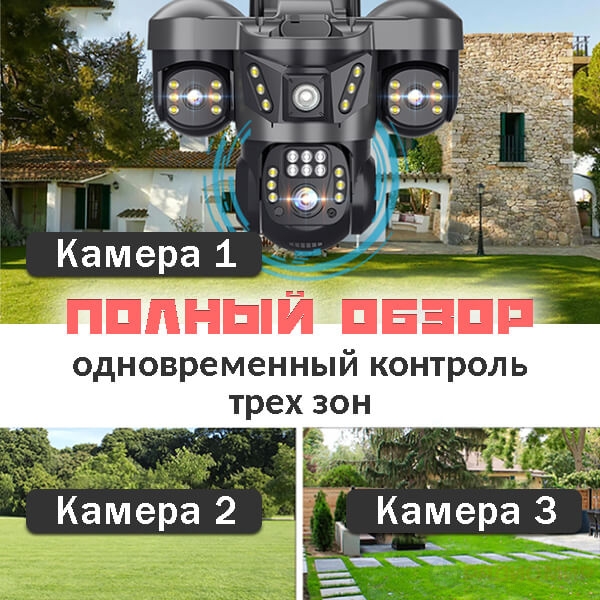 Видеокамера VNI68A WiFi — универсальное решение для видеонаблюдения с охватом трёх направлений. Три объектива позволяют фиксировать обстановку одновременно с разных ракурсов, а запись сохраняется в единый видеопоток, разделённый на три изображения.