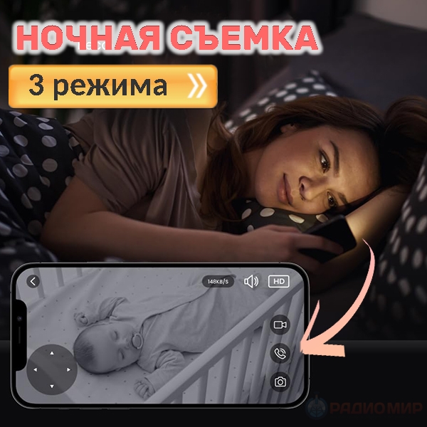 - Три режима ночного видения: цветной, инфракрасный или умный — камера сама выбирает оптимальный вариант.