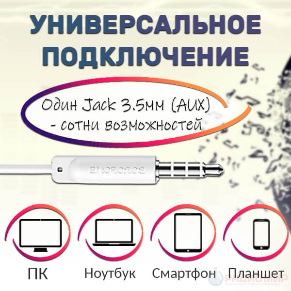 - Можно ли использовать эти наушники с ноутбуком или ПК? — Да, с любым устройством с разъёмом 3.5 мм.