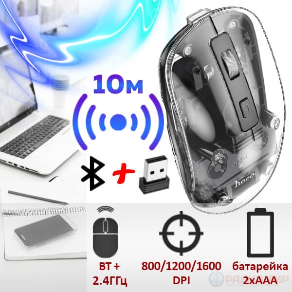 Беспроводная мышь Hoco GM29 Mysterious — удобно, тихо и стильно.