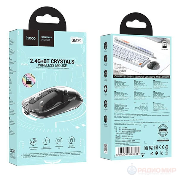 Hoco GM29 — это легкая и современная беспроводная мышь, рассчитанная на комфортную ежедневную работу. Она подойдет для дома, офиса, учебы и поездок, если вам важно удобство, аккуратный внешний вид и стабильная работа без лишнего шума.