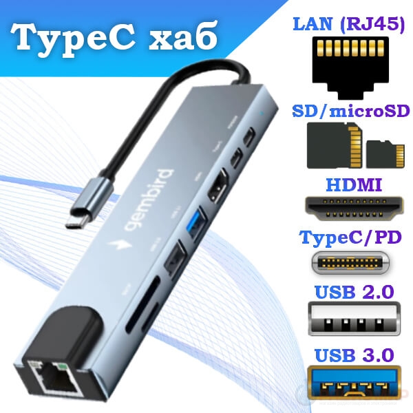 Gembird UHB-D3 объединяет 8 функций в одном устройстве и помогает использовать их с максимальной пользой: