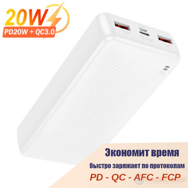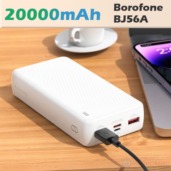 Мощный и уверенный в себе power bank на 20000mAh, который умеет заряжать быстро и стабильно. Поддержка PD 20W и QC 22.5W, три порта для заряда и точный LED-индикатор — этого достаточно, чтобы ваш смартфон, наушники или планшет были заряжены, где бы вы ни были. Литий-полимерная батарея и фирменная стабильность Borofone делают BJ56A удобным спутником в городе и в путешествиях.Преимущества